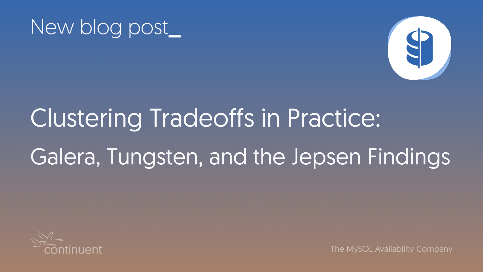 The Jepsen findings make more sense once you look at what each system is built to do. Galera is designed to make a cluster of peer nodes behave like a write anywhere system. Continuent Tungsten Cluster is built around a clear chain of authority, where write order, read freshness, and promotion decisions are controlled explicitly.