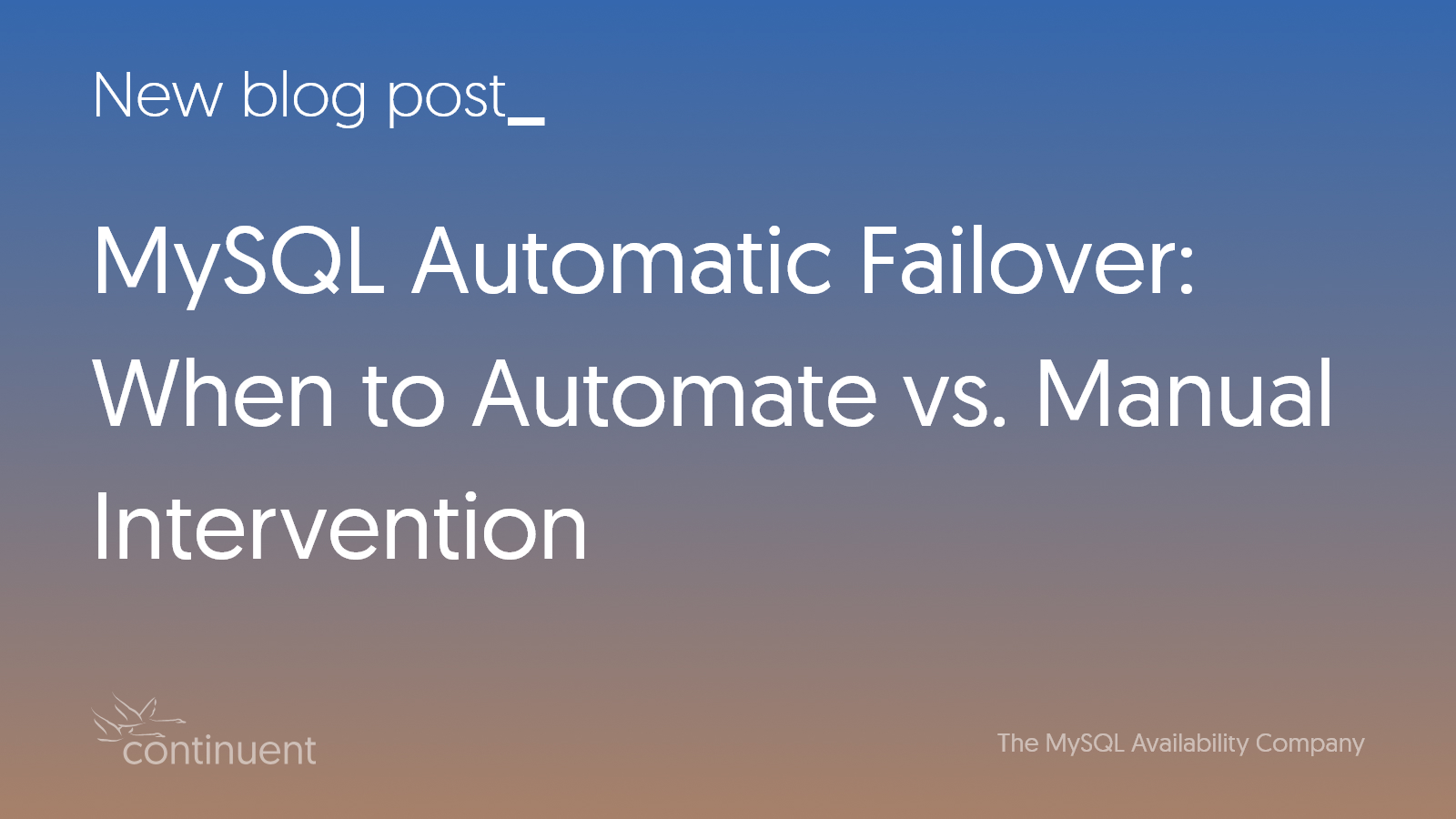 MySQL automatic failover is a spectrum, not a binary choice. The question is not whether to automate, but how much to automate, under what conditions, and with what safeguards.